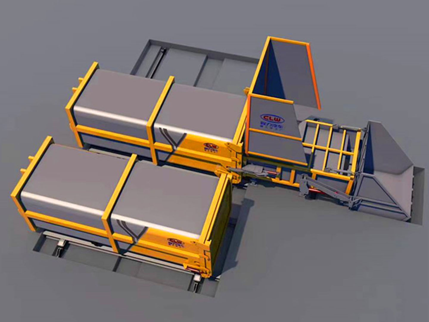 分體式垃圾壓縮設(shè)備(一機兩箱式垃圾中轉(zhuǎn)站,也可一機配多箱),一個垃圾壓縮裝置,釆用水平壓縮方式,將垃圾壓縮并儲存在設(shè)備前端的大容量垃圾集...