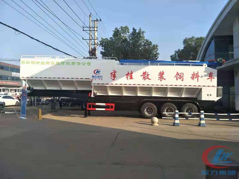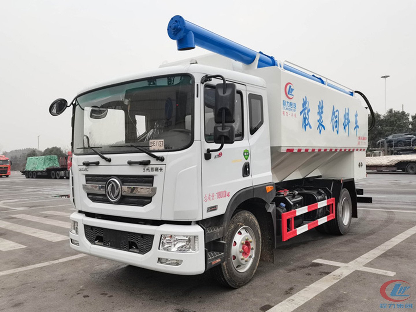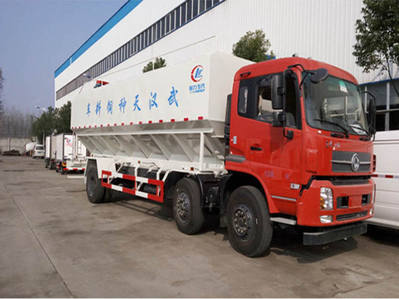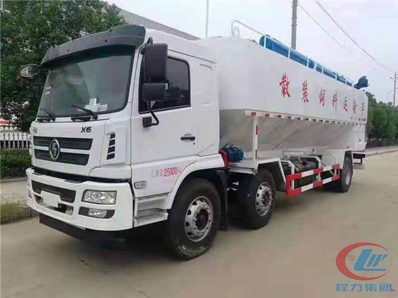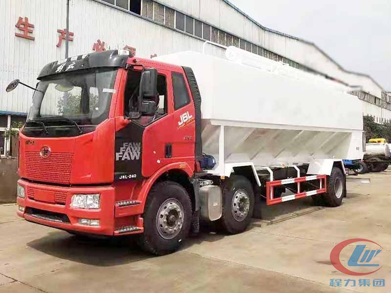 散裝飼料車(英文:bulk feed truck)是用于運(yùn)輸散裝飼料的專用車,主要用于飼料廠將生產(chǎn)出來(lái)的飼料運(yùn)輸?shù)金B(yǎng)雞場(chǎng)、養(yǎng)豬場(chǎng)等;散裝飼料車同時(shí)也可用來(lái)運(yùn)輸某些無(wú)腐蝕性粉粒狀原料,如制藥廠粉料和糧庫(kù)周轉(zhuǎn)。散裝飼料車的飼料罐架設(shè)在卡車的底盤(pán)上,罐體根據(jù)飼料種類不同可以結(jié)合用戶需求進(jìn)行分倉(cāng),罐頂開(kāi)有進(jìn)料口,頂部設(shè)有一根螺旋輸送卸料管(俗稱卸料絞龍,絞龍根據(jù)其動(dòng)力不同可以分為電動(dòng)絞龍或者液壓絞龍)則可自由旋轉(zhuǎn)和抬升。程力散裝飼料運(yùn)輸車打造行業(yè)精品,以優(yōu)良的性能和經(jīng)久耐用贏得市場(chǎng),成為國(guó)內(nèi)多家知名畜牧公司首選品牌。程力飼料車熱銷車型:東風(fēng)多利卡飼料車、東風(fēng)天錦小三軸飼料車、柳汽乘龍飼料車、東風(fēng)天龍飼料車、半掛飼料車等等。